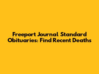 Finding Freeport Journal Standard obituaries is more than just a search for names and dates; it's a way to connect with the lives and legacies of those who have shaped the Freeport community. By utilizing the various online resources, print archives, and funeral home contacts, you can effectively locate the information you need. Remember to also explore the additional resources available for grief support and remembrance, allowing you to honor your loved ones and navigate the grieving process with strength and compassion.