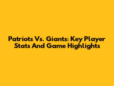 Patriots Vs. Giants: Key Player Stats And Game Highlights
