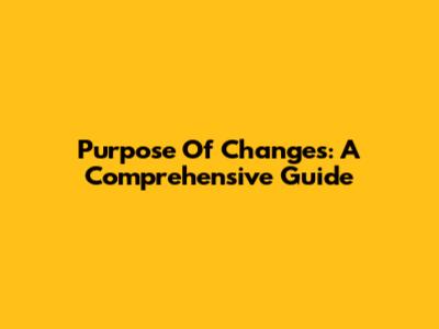 Purpose Of Changes: A Comprehensive Guide