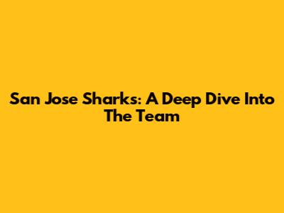 San Jose Sharks: A Deep Dive Into The Team