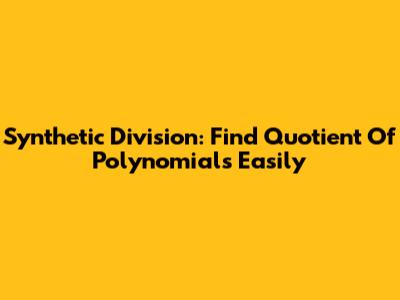 Synthetic Division: Find Quotient Of Polynomials Easily